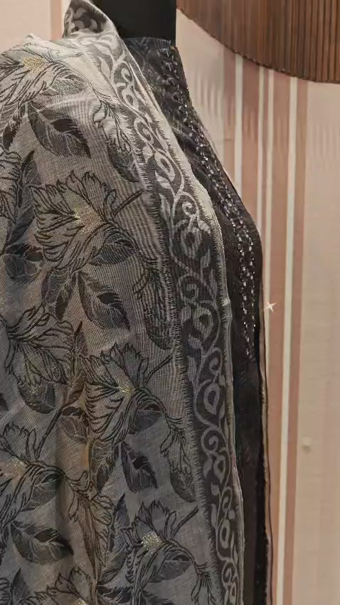 Statement Dupatta: The matching dupatta is a work of art, featuring a rich, all-over floral vine print that contrasts beautifully with the structured pattern of the kurta. It is finished with a classic borders for a complete look.